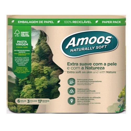 Papel Hig.Doméstico 3Fls 17mt 96R Naturally Soft Amoos
