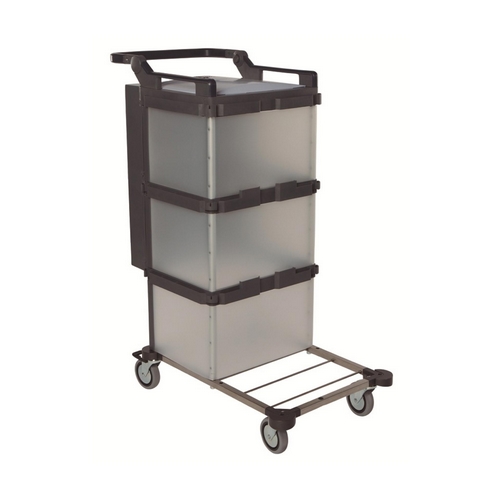 O Carro Multiusos Plus com Saco é robusto e versátil, fabricado em polipropileno, ideal para hotelaria e grandes superfícies. Com estrutura cinzenta e saco amarelo, possui rodas traseiras fixas de borracha e frontais giratórias para fácil manobrabilidade. Equipado com bandeja inferior de 90 cm e bandejas intermédia e superior de 40 cm, facilita o transporte e organização de produtos de limpeza. Requer limpeza semanal com produtos adequados.